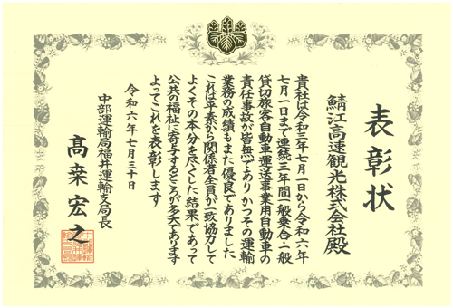 また弊社はバス業界の基本である、安全輸送と旅客サービスを通じて、地域社会に 貢献することを弊社基本方針として、これからも頑張っていく次第です。